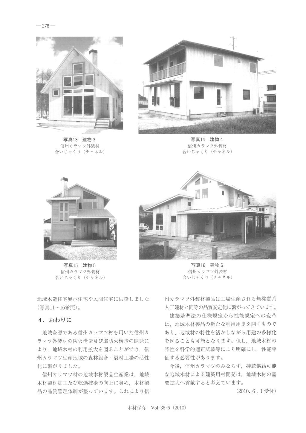 執筆記事 〇木材保存 Wood Pewservation 信州カラマツ材による防火、準防火構造に関する技術開発