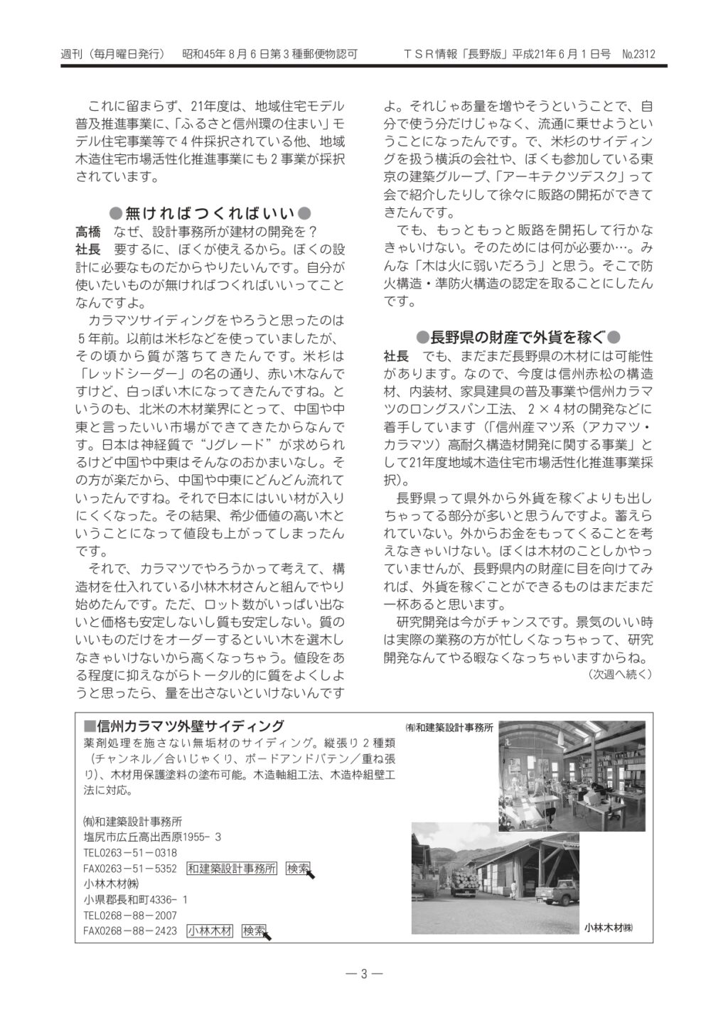 地域木材活用 ○商工リサーチインタビュー 2009年 6月1日